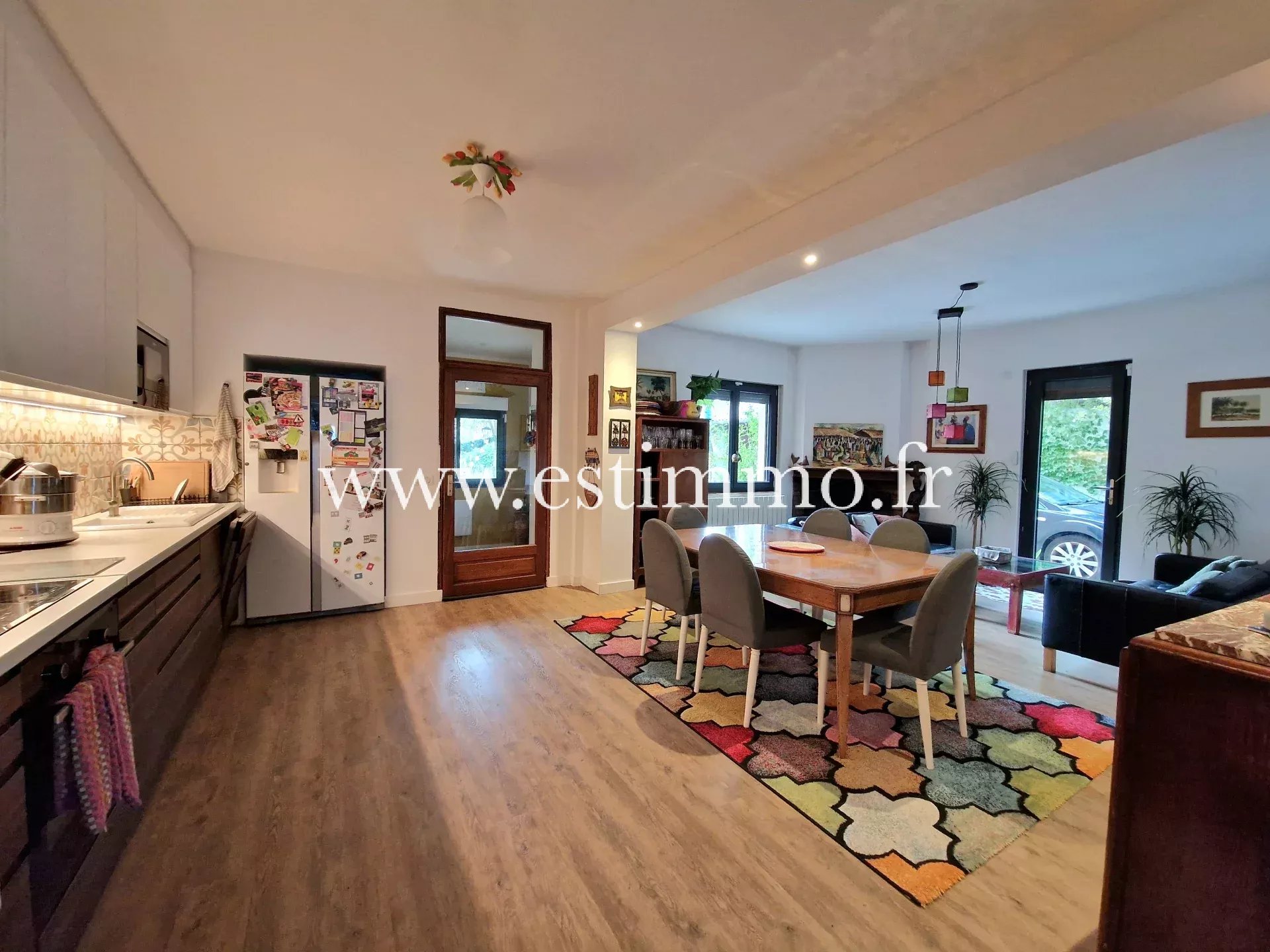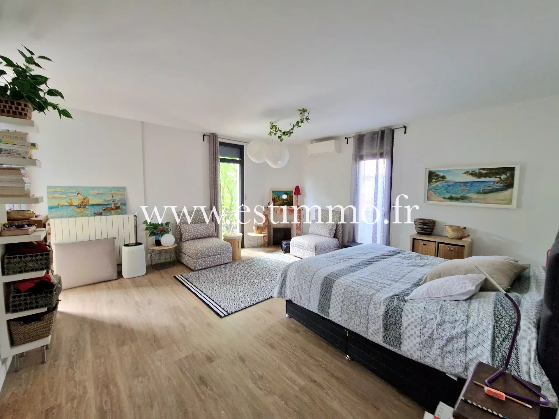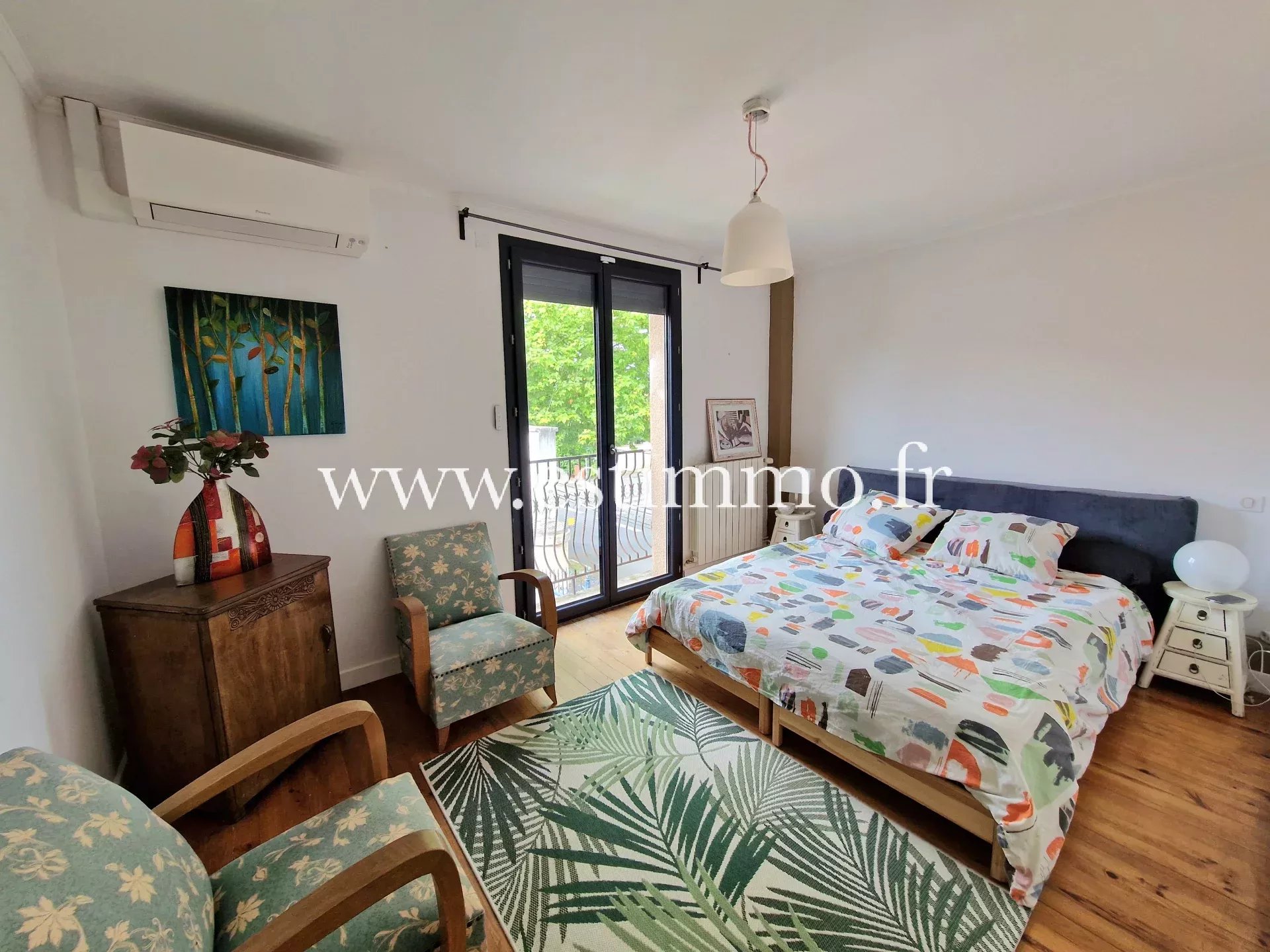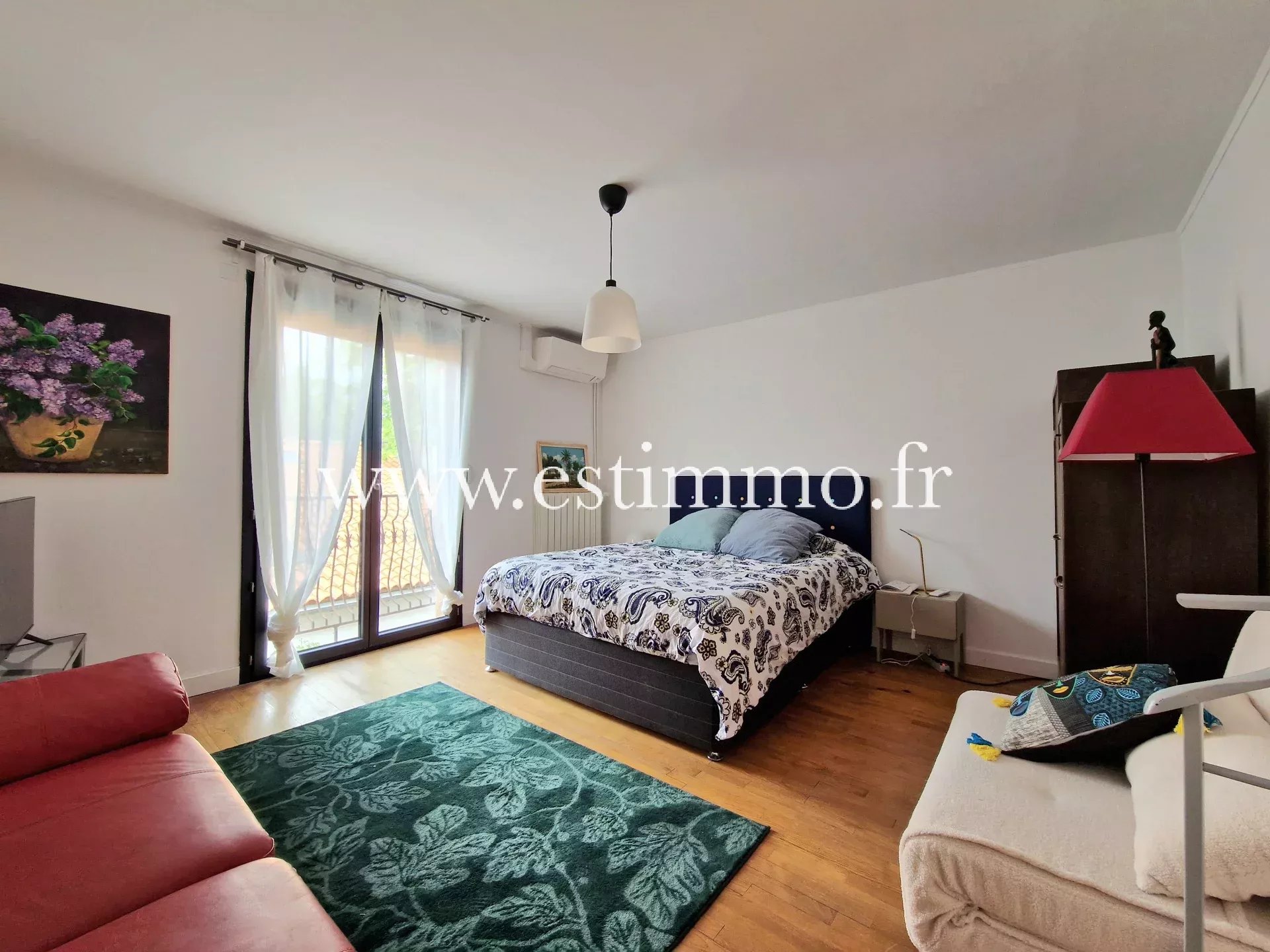 Cugnaux, charmante et lumineuse maison de ville dans un écrin de verdure de 911 m2. Elle développe 224 m2 habitables sur 2 niveaux. Au rez-de-chaussée, cuisine familiale entièrement équipée et aménagée et sa salle à manger attenante, une triple réception de 63 m2 environ, une lingerie/chaufferie. L'étage climatisé distribue 3 belles chambres, une suite parentale avec sa salle d'eau s'ouvre sur une terrasse privative surplombant le jardin. Une salle d'eau supplémentaire. Un studio attenant avec salle d'eau est totalement indépendant. Un vaste garage et possibilité également de se garer sur la parcelle. Au calme absolu et à proximité de toutes les commodités. Bien rare. ESTIMMO 0561544305.www.estimmo.fr
